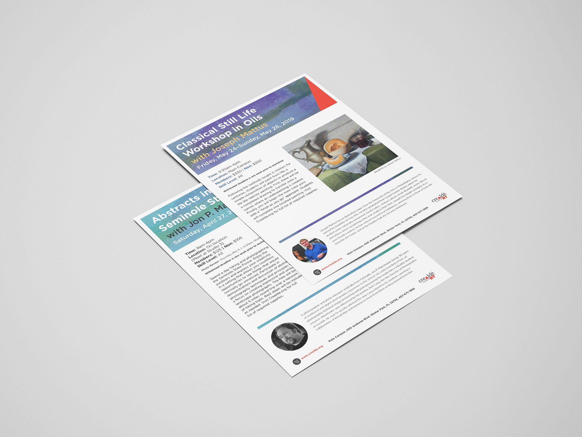 Fliers I designed and illustrated while working for Crealdé School of Art, a nonprofit art school located in Winter Park, FL.